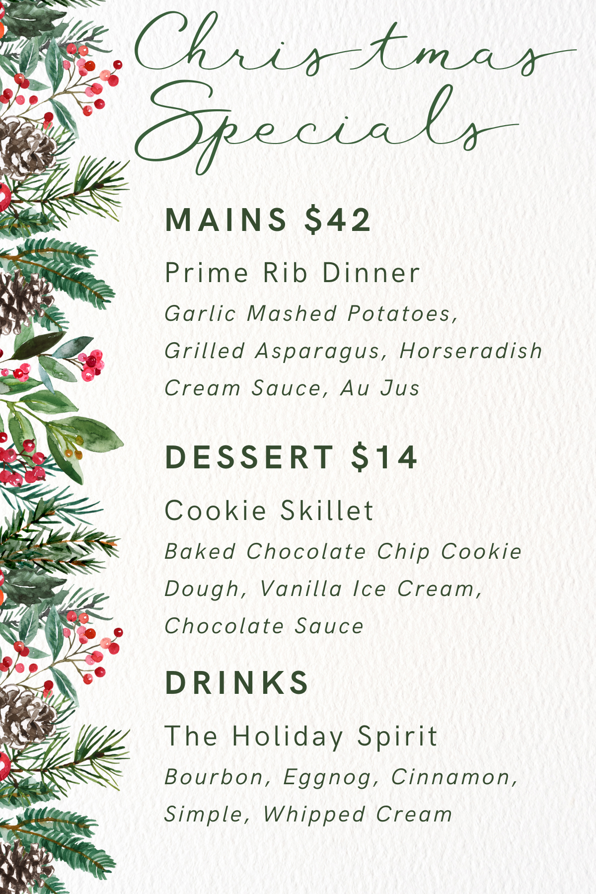 Join us on Christmas Eve and Christmas Day for some delicious holiday specials from the mind of Chef Garry!