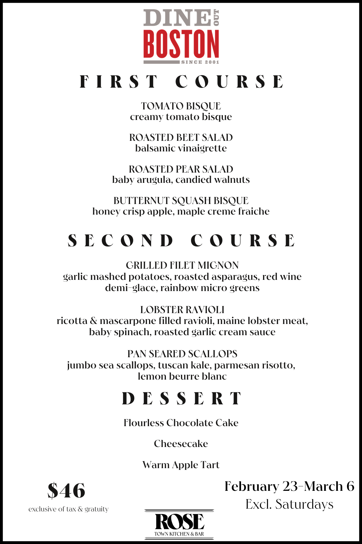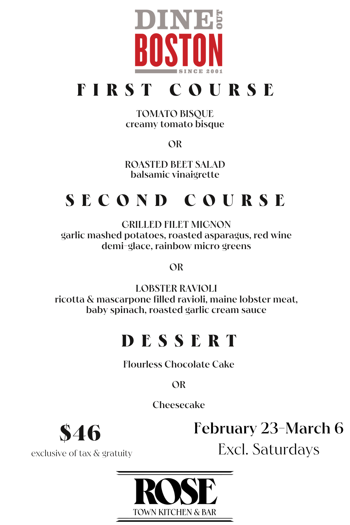 Dine Out Boston offers visitors and locals the perfect opportunity to discover why Boston is one of the culinary capitals of the world! Held twice-yearly by Meet Boston in partnership with participating restaurants, Boston's official restaurant week features prix fixe menus at multiple price points for lunch and dinner.