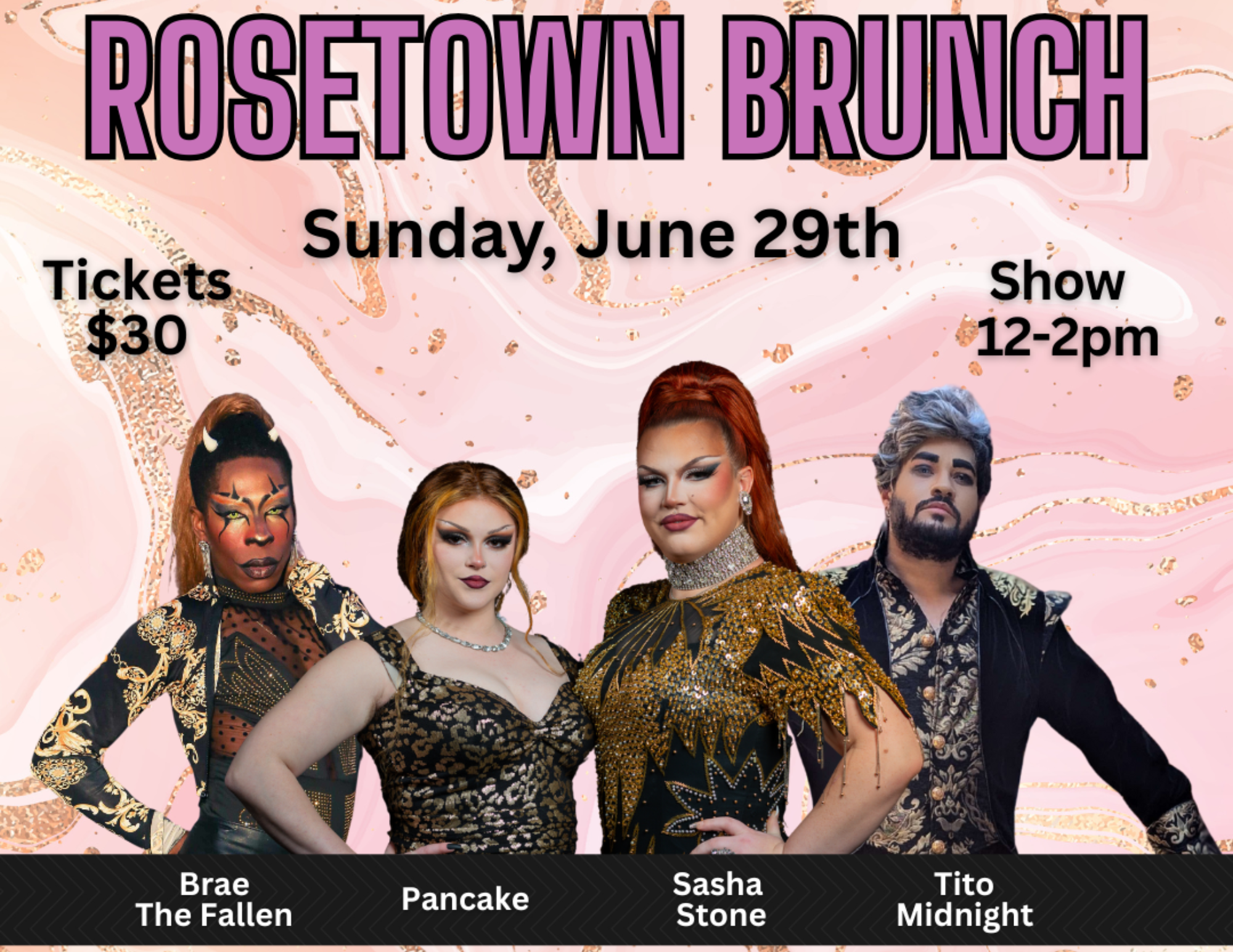 In proud partnership with Big Gay Events, we’re bringing an incredible lineup of performers to light up your afternoon: the sensational Sasha Stone, the delightfully sweet Pancake, the dazzling Brae Edwards, and the electrifying Tito Midnight. These queens are ready to serve fierce looks, laughs, and unforgettable performances.